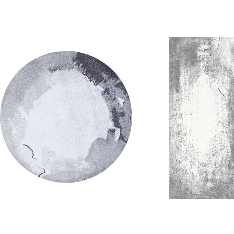 Breng een industriële flair in uw ruimte met deze stijlvolle grijsblauwe ronde tapijten.